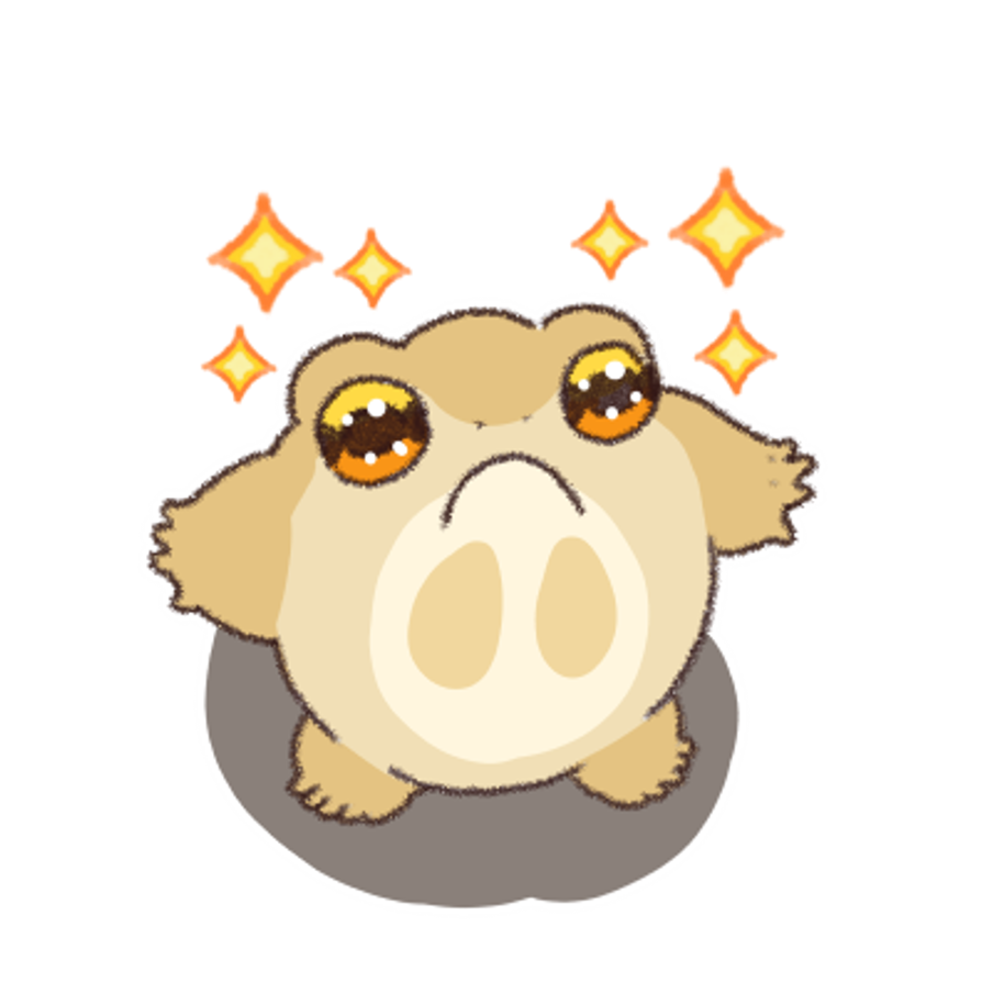 ずんぐりとしたフォルムの、たぬきのような生きもの。